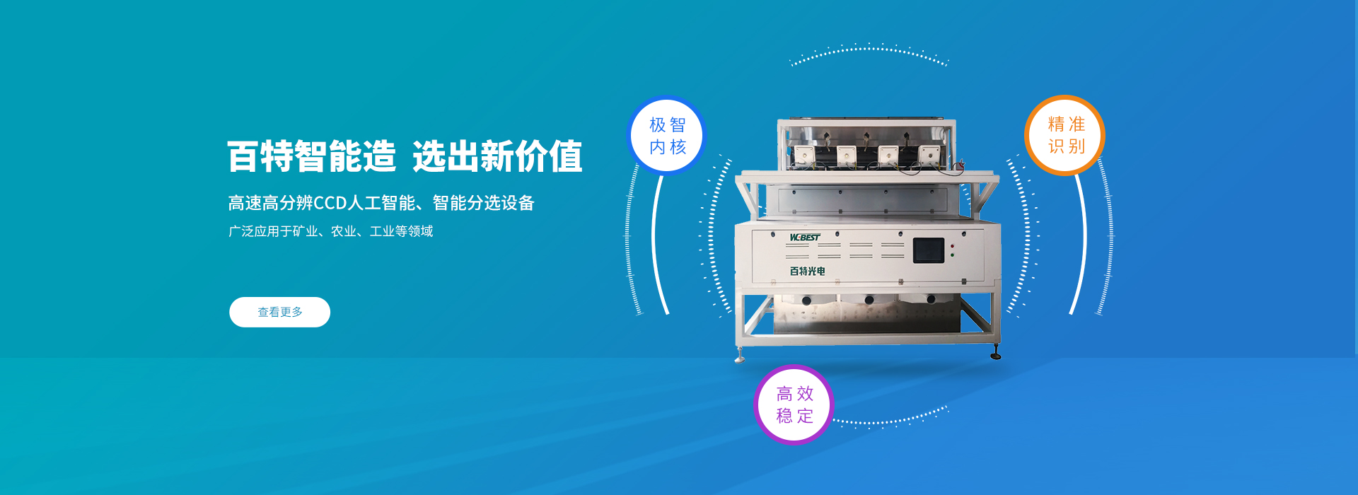 全新設計LED光源,低功耗,低熱量。高敏感CCD傳感器;進口電磁閥擁有1200Hz的頻率,高速響應;高清4K全彩鏡頭,大光圈,畸變小,分辨率高;全封閉式分選箱設計;雙層分選技術,一次解決多次分選;根據粉塵產生原因,針對性地設計吸塵裝置。